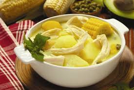 Algunos de las platos más tradicionales de Bogotá son por ejemplo la Fritanga, preparada a base de diferentes tipos de carne: chorizo, cerdo, res, corazón, ubre, e incluye además papa, plátano maduro y arepa; el Ajiaco es una tipo de sopa de pollo preparada a base de papa sabanera, criolla, guascas, papas pastusa y mazorca, acompañada habitualmente con arroz, aguacate, nata de leche y alcaparras. Unos de los más tradicionales es el puchero Santafereño, preparado con carne, yuca, plátano, papa pastusa y sabanera y mazorca tierna y se sirve decorado con hojas de repollo. Además, en todo Colombia se consume mucho el llamado Sancocho de Gallina, preparado con gallina, papa, yuca y plátano y acompañado de arroz blanco.