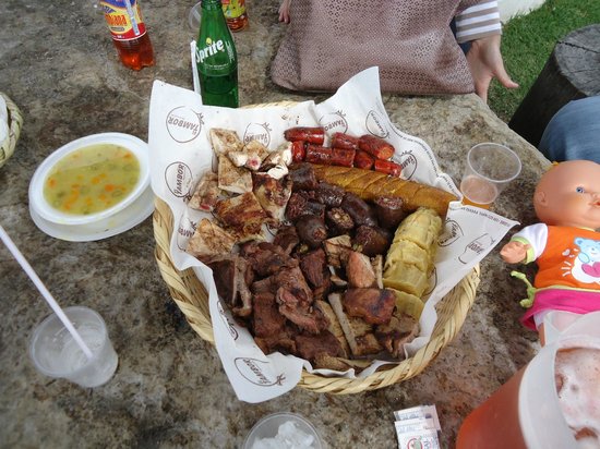 Una de los platos que merece la pena probar son los famosos Tamales con Chocolate, el tamal se prepara con una mezcla a base de maíz, carne, longaniza, pollo, garbanzos, ajo, cebolla larga, costilla de cerdo y muy bien condimentada, para después envolverla en hojas de plátano, amarrarla con cabuya y cocinarlos al vapor. Estos tamales se acompañan generalmente con una taza de chocolate caliente.